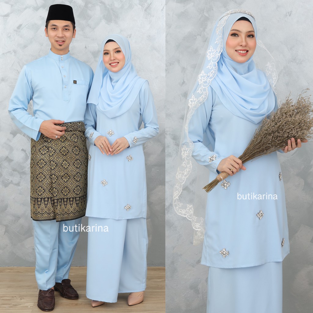 Buy Baju Kurung Moden Nikah Sanding Biru Lembut Soft Blue Baby Blue Light Blue Couple Set Sedondon Mawar Seetracker Malaysia